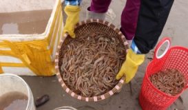 Thời tiết thuận lợi nên nhiều bà con ở xã Hải Triều (huyện Hải Hậu, tỉnh Nam Định) liên tục trúng đậm tôm biển.