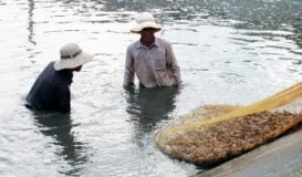 Người nuôi tôm ở xã Vạn Thọ (huyện Vạn Ninh, Khánh Hòa) đang rất phấn khởi vì trúng liên tiếp 2 đợt tôm thẻ chân trắng.