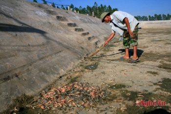 Nền nhiệt xấp xỉ 40 độ C trong những ngày vừa qua ở Nghệ An đã khiến cho tôm ở các đầm nuôi tôm tại huyện Quỳnh Lưu, TX. Hoàng Mai, xã Hưng Hòa (TP. Vinh) chết hàng loạt; diện tích ngô ở nhiều địa phương cũng bị khô cháy…