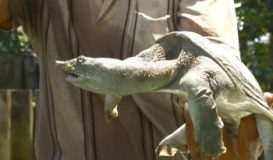 Ông Nguyễn Văn Hòa ở huyện Phụng Hiệp, tỉnh Hậu Giang có 14 năm gắn liền với nghề nuôi ba ba với trang trại có quy mô 22 ao nuôi, nhiều khu dành cho ba ba đẻ trứng và lò ấp.