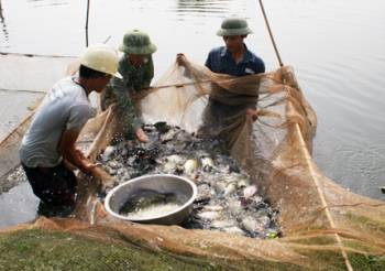 Thực hiện chương trình xây dựng nông thôn mới, chuyển đổi từ mô hình nuôi con năng suất thấp sang mô hình cho hiệu quả kinh tế cao hơn, xã Liên Châu, huyện Thanh Oai, TP.Hà Nội đã triển khai thành công mô hình thí điểm nuôi cá chép lai cho năng suất cao.