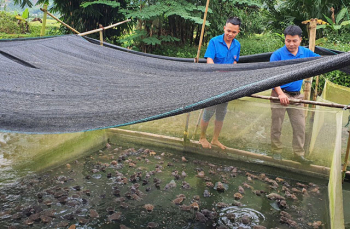 Đó là mô hình nuôi ếch giống, ếch thương phẩm và cá của anh Hoàng Ngọc Bằng thôn Trung (xã Vĩnh Phúc, huyện Bắc Quang).