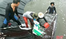 Tránh thiệt hại nặng nề do cơn bão số 3 (Sơn Tinh), từ ngày 17- 18/7, HTX Nuôi trồng thủy sản Xuân Thành (Xuân Phổ, Nghi Xuân, Hà Tĩnh) đã tiến hành thu hoạch tôm “chạy” bão.