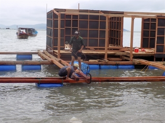 Cơn bão số 12 đổ bộ cuối năm ngoái khiến hầu hết lồng bè nuôi trên biển của ngư dân huyện Vạn Ninh (Khánh Hòa) bị thiệt hại hoàn toàn. Sau bão đến nay bà con từng bước khôi phục lại sản xuất.