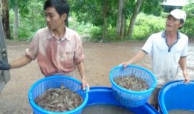 Từ đầu tháng 4/2018 đến nay, giá tôm thẻ chân trắng trên địa bàn tỉnh Trà Vinh giảm mạnh so với năm 2017, khiến người nuôi tôm lãi thấp, thậm chí nhiều hộ bị lỗ.