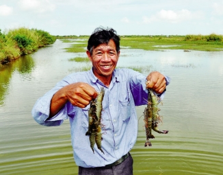 Nông dân ấp 11, xã Khánh Tiến, huyện U Minh, Cà Mau đang rất phấn khởi với những ao tôm thắng lợi. Đó là thành quả của sự chuyển giao kỹ thuật từ mô hình cánh đồng lớn nuôi tôm sú quảng canh cải tiến ít thay nước mà Trung tâm Khuyến nông – Khuyến ngư Cà Mau lần đầu tiên triển khai trên vùng đất này.