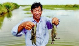 Nông dân ấp 11, xã Khánh Tiến, huyện U Minh, Cà Mau đang rất phấn khởi với những ao tôm thắng lợi. Đó là thành quả của sự chuyển giao kỹ thuật từ mô hình cánh đồng lớn nuôi tôm sú quảng canh cải tiến ít thay nước mà Trung tâm Khuyến nông – Khuyến ngư Cà Mau lần đầu tiên triển khai trên vùng đất này.