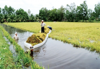Huyện U Minh Thượng, An Minh là vùng quy hoạch sản xuất theo mô hình lúa – tôm chính của tỉnh Kiên Giang có quy mô lớn. Năm nay, nhiều địa phương đẩy mạnh phát triển mô hình cánh đồng lớn (CĐL) với sự tham gia của doanh nghiệp cung cấp vật tư đầu vào và bao tiêu lúa hàng hóa cho nông dân.