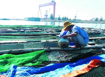 Gần 2 năm nay, một số hộ dân Bình Đông, Bình Thạnh (huyện Bình Sơn, tỉnh Quảng Ngãi) tận dụng thế mạnh khu vực biển phía sau bờ chắn sóng Nhà máy đóng tàu Dung Quất (giáp cửa biển Sa Cần), phát triển nghề nuôi cá bớp trong lồng bè.