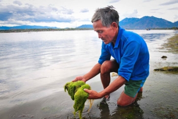 Người nuôi rong sụn ở huyện Cam Lâm (Khánh Hòa) đang đối mặt với thua lỗ vì điều kiện thời tiết không thuận lợi, rong mền gây hại phát triển nhiều, tiền bán rong không bù lỗ được tiền công.