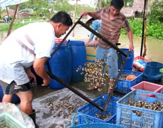 Hơn 3 tháng trở lại đây, tại đầm Ô Loan (huyện Tuy An) mô hình kết bè nuôi ốc cháy (một đối tượng nhuyễn thể 2 mảnh vỏ) phát triển khá mạnh.