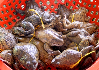 Anh Giáp Văn Bảo, trú tại thôn Ngọc Trai, xã Việt Lập, huyện Tân Yên có thu nhập hơn 100 triệu đồng/năm nhờ cung cấp giống và ếch thịt Thái Lan ra thị trường.