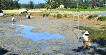 Dịch bệnh và môi trường nước bị ô nhiễm khiến người nuôi tôm gặp nhiều khó khăn. Một trong những giải pháp giúp người dân Tịnh Hòa (TP. Quảng Ngãi) khắc phục được tình trạng này đó là thả cá dìa vào hồ tôm sú để nuôi kết hợp.