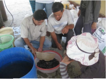 Vụ tôm năm 2014 theo mô hình nuôi tôm sú luân canh trên nền đất lúa dưới hình thức quản lý cộng đồng ở huyện An Biên được thực hiện từ trung tuần tháng 3/2014 và thả với mật độ 5 con/m2.