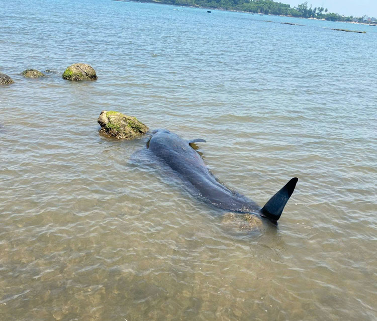 Phát hiện 1 con cá voi trôi dạt vào bờ biển Quảng Ngãi
