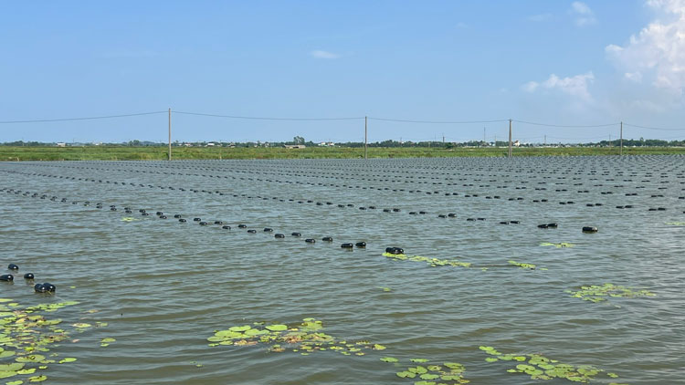 Trên tổng diện tích 5ha được xây dựng thành 7 hồ, anh Thủy bắt đầu thả giống từ tháng 8/2024, qua theo dõi cho thấy, trai lấy ngọc tại vùng hữu ngạn sông Nghèn này đang phát triển khá tốt, các ao xuống giống sớm sắp được cấy ngọc để chuyển sang chu kỳ nuôi mới.