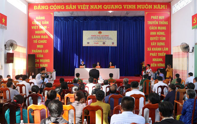 Dự phiên tòa giả định có gần 300 người dân trong xã Khánh Lâm. Sau phiên tòa, diễn ra cuộc tọa đàm pháp luật về chống khai thác IUU. Bà con ngư dân nêu những thắc mắc, câu hỏi liên quan đến công tác chống khai thác IUU và đại diện các cơ quan chức năng trao đổi, giải đáp, làm rõ.