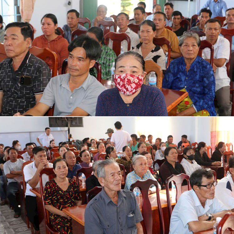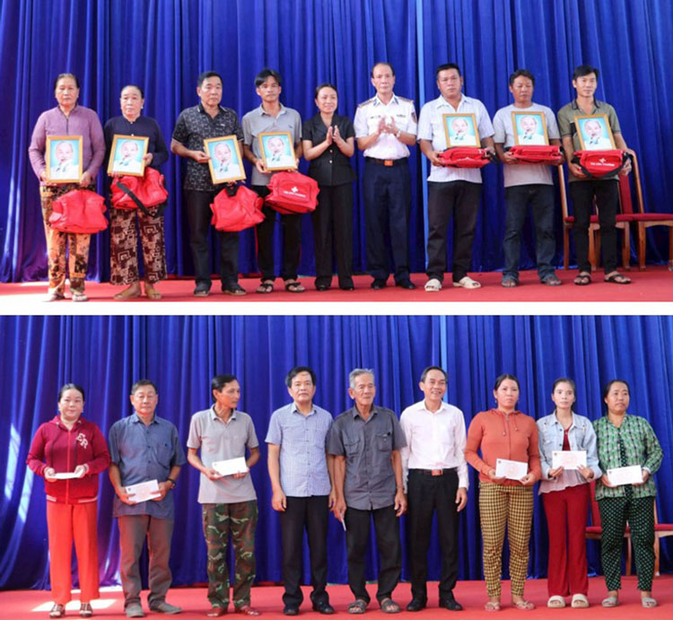 Kết thúc tọa đàm, Ban tổ chức trao tặng 20 phần quà, mỗi phần trị giá 1 triệu đồng cho bà con có khó khăn và 15 túi thuốc y tế cho ngư dân trong xã Khánh Lâm.