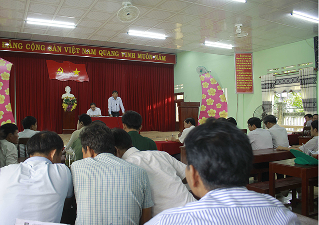 UBND huyện Bình Sơn thông báo các thông tin về kết quả xét nghiệm và giải đáp thắc mắc người nuôi cá. Ảnh: NGUYỄN TRANG
