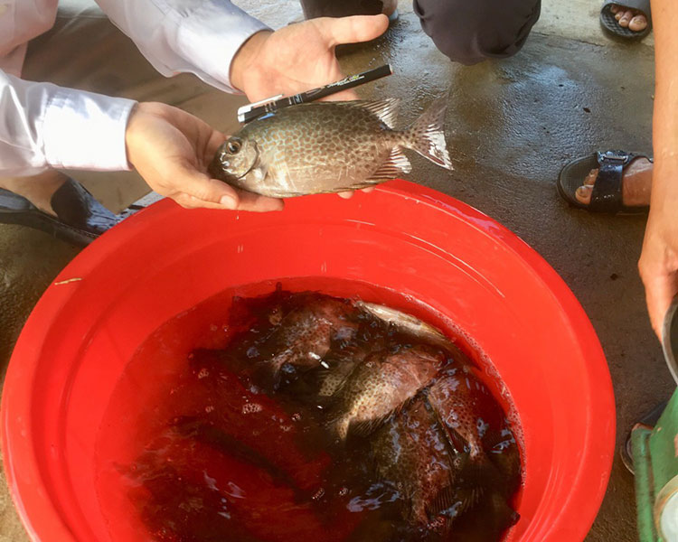 Cá dìa nuôi trong ao tôm kém hiệu quả ở Quảng Trị với trọng lượng sau 5 tháng nuôi. Ảnh: TTKNQT