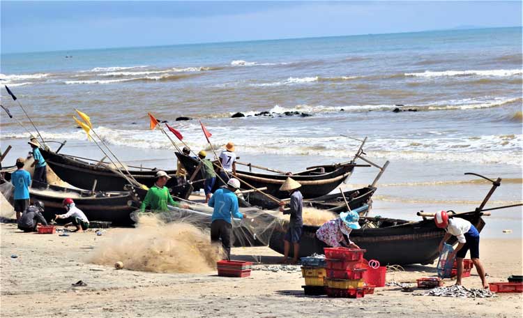 Không thể đóng tàu to, thuyền lớn để vươn khơi xa như ngư dân vùng cửa lạch nhưng ngư dân vùng biển bãi ngang xã Vĩnh Hoàng vẫn có cuộc sống đủ đầy, khá giả nhờ đa dạng các nghề đánh bắt ở các rạn biển gần bờ. Tùy theo mùa, ngư dân sẽ chọn nghề phù hợp để đánh bắt…