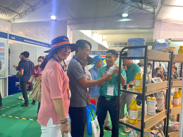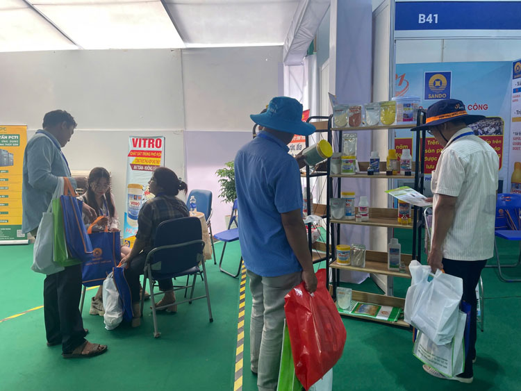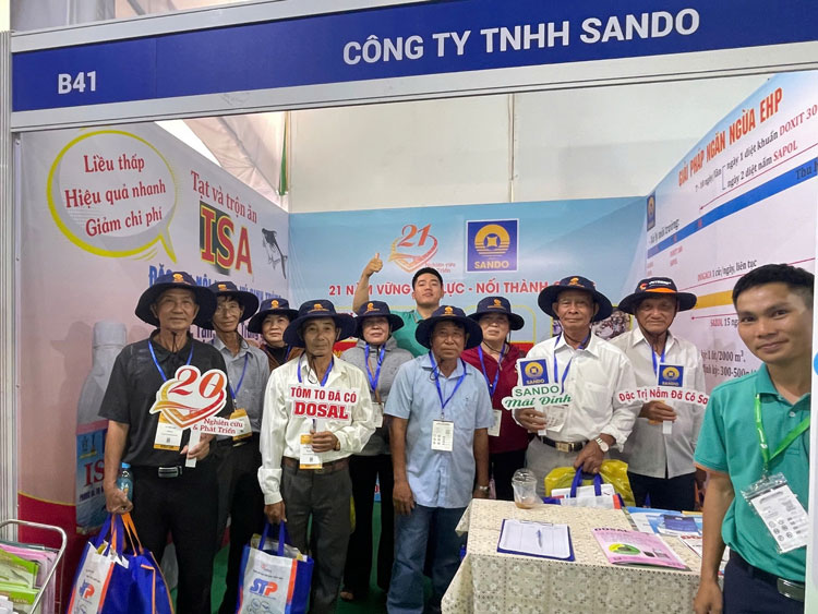 Giữa không gian triển lãm sôi động, gian hàng SANDO gây ấn tượng với thiết kế chuyên nghiệp, thu hút đông đảo khách tham quan, mang đến giải pháp dinh dưỡng chất lượng cao và công nghệ hiện đại, giúp người nuôi tôm nâng cao hiệu quả sản xuất.