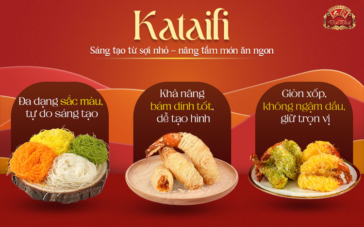 Nhờ tính thẩm mỹ cao và khả năng ứng dụng linh hoạt, các dòng Kataifi đa sắc và Kataifi vụn cũng trở thành lựa chọn lý tưởng cho các doanh nghiệp phục vụ phân khúc nhà hàng – khách sạn (HORECA) cũng như thực phẩm đông lạnh cao cấp.