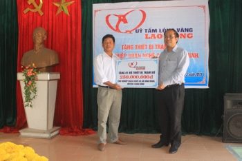 Mới đây, Quỹ Tấm lòng vàng, báo Lao Động đã trao tặng 1 bộ thiết bị trạm bờ, trị giá 250 triệu đồng cho Nghiệp đoàn Nghề cá xã Bình Minh (huyện Thăng Bình, tỉnh Quảng Nam).
