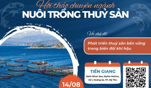 (TSVN) – Hội thảo chuyên ngành Nuôi trồng thuỷ sản thảo luận về chủ đề “Phát triển thuỷ sản bền vững trong biến đổi khí hậu”, sẽ diễn ra vào ngày 14/08/2024 tại Sảnh Silver Sea, Mytho Marina, Số 1, Hoàng Sa, TP. Mỹ Tho, tỉnh Tiền Giang.