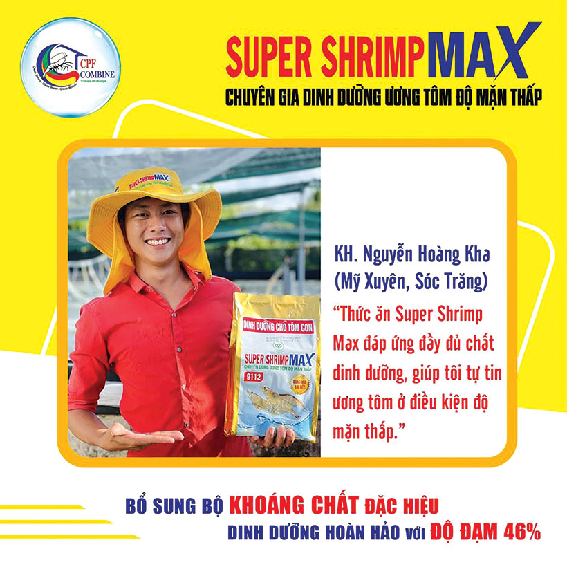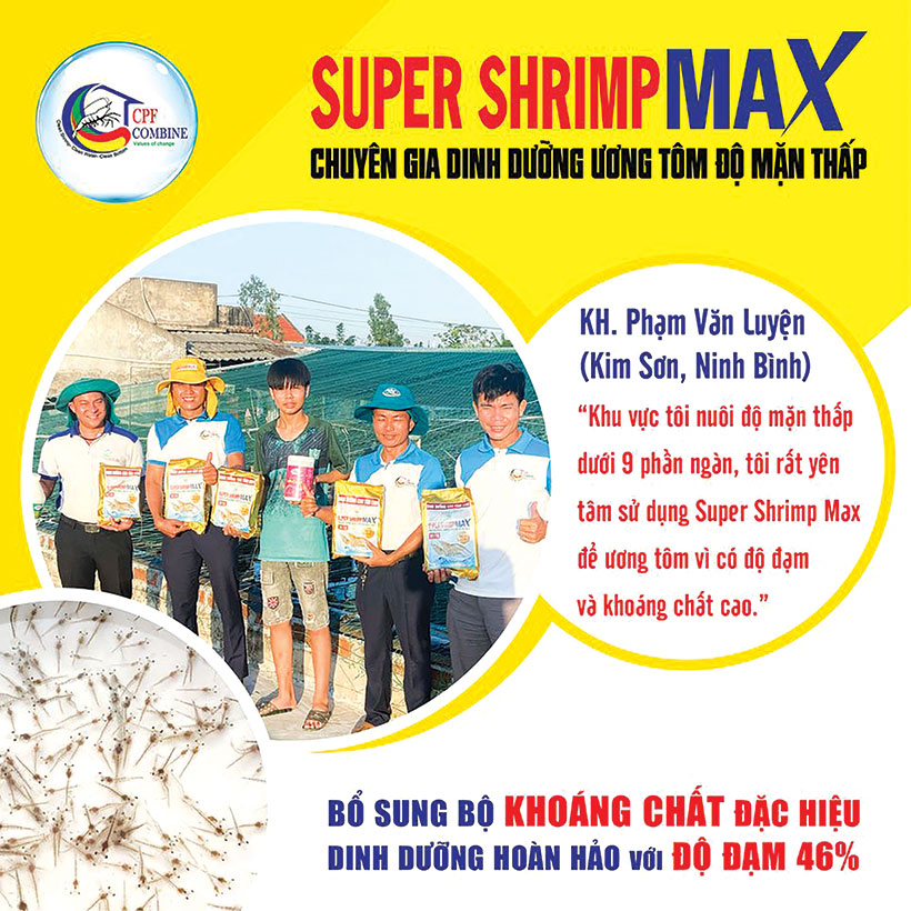 (TSVN) – Từ đầu năm 2021 C.P. Việt Nam đã cho ra mắt thức ăn chuyên dùng ương tôm độ mặn thấp SUPER SHRIMP MAX, với những ưu việt của sản phẩm đã giúp người nuôi an tâm, hài lòng và đạt kết quả nuôi ấn tượng.