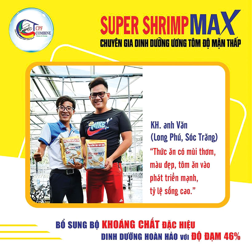 Hiểu rõ những khó khăn trên, SUPER SHRIMP MAX được ra đời với độ đạm lên đến 46% cùng bộ khoáng chất đặc hiệu được bổ sung. Sản phẩm đã trở thành ưu tiên hàng đầu của nhiều quý khách hàng, liên tiếp những phản hồi, đánh giá tích cực được gửi về dành cho sản phẩm trong suốt thời gian qua.