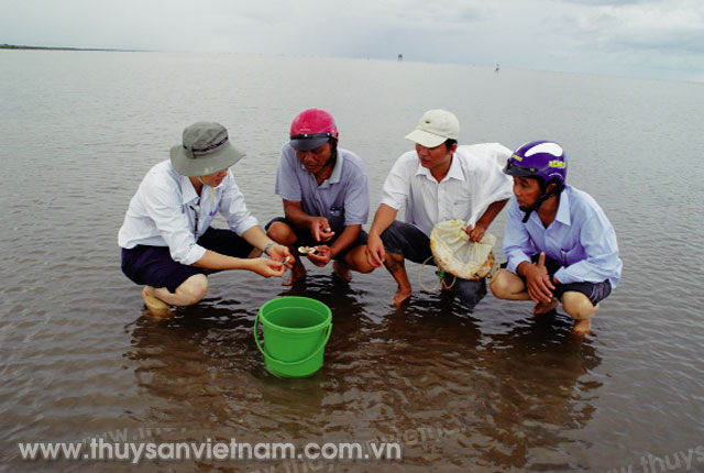 Thường xuyên theo dõi, kiểm tra ngao nuôi Ảnh: Trần Út