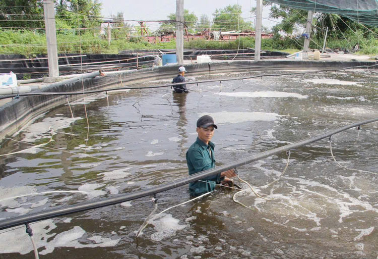 Nuôi tôm trên ao bán nổi tại xã Nam Phú, huyện Tiền Hải. Ảnh: BTB