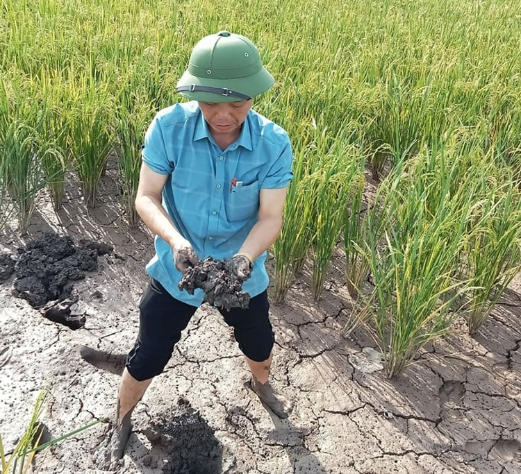 Lãnh đạo Trung tâm Khuyến nông tỉnh Thái Bình kiểm tra, hỗ trợ kỹ thuật cho các hộ sản xuất lúa – rươi tại huyện Thái Thụy. Ảnh: TTKN Thái Bình
