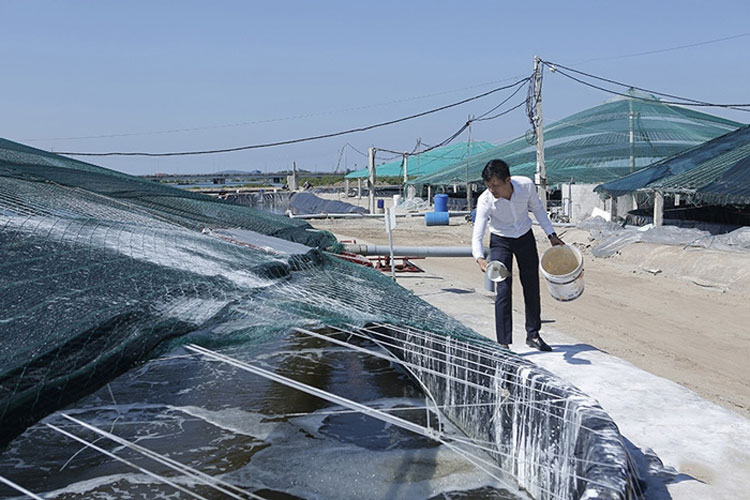 Hay như anh Trần Văn Thanh, phường Ngọc Sơn, thị xã Nghi Sơn cho biết: “Những năm gần đây, người nuôi tôm gặp phải nhiều khó khăn do thời tiết và một số tác nhân khác khiến dịch bệnh xảy ra nhiều. Để ngăn ngừa và kiểm soát dịch bệnh, trước kia chúng tôi phải sử dụng thuốc, các chất hóa học không an toàn để vệ sinh ao nuôi gây ảnh hưởng đến môi trường cũng như sức khỏe con người. Nhằm hạn chế tình trạng trên, mấy năm trở lại đây, chúng tôi đã chú trọng đầu tư trang thiết bị hiện đại, ứng dụng khoa học – kỹ thuật, công nghệ cao như nuôi tôm trong nhà kính, xây ao lắng, xây nhà bao phủ các ao nuôi, lót bạt đáy ao, lắp hệ thống quạt ôxy đáy,… theo thiết kế kiểu ao nổi để nuôi tôm thẻ chân trắng nên đã đạt hiệu quả kinh tế cao”.