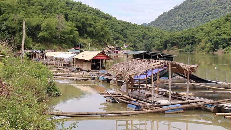 Bè nuôi cá lồng của người dân xã Trung Xuân (Quan Hóa).