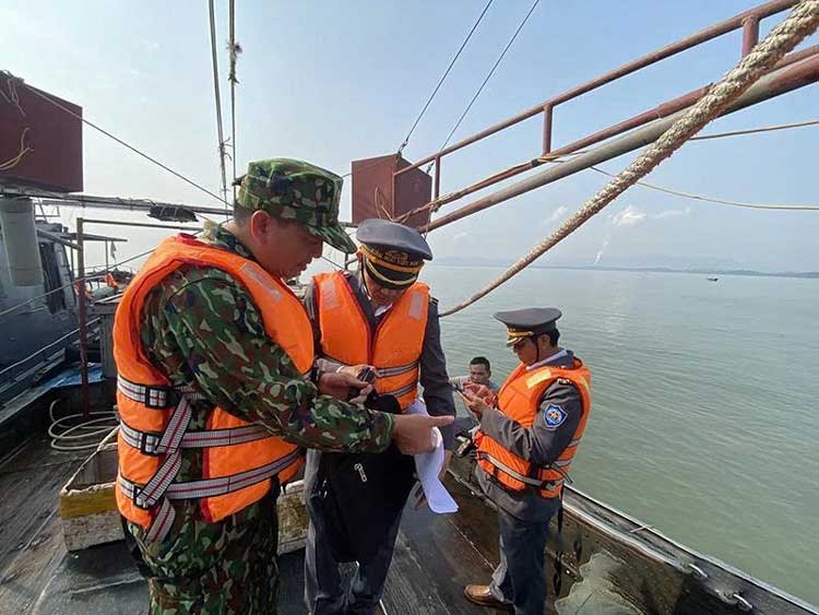 Lực lượng chức năng kiểm tra tàu cá khai thác trên biển.