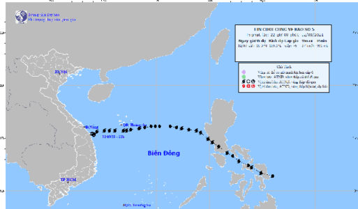 Hồi 19 giờ ngày 10/9, vị trí tâm bão ở khoảng 15,7 độ Vĩ Bắc; 111,3 độ Kinh Đông, ngay trên vùng biển phía Tây Nam khu vực quần đảo Hoàng Sa, cách bờ biển Quảng Trị-Quảng Nam khoảng 340km về phía Đông. Sức gió mạnh nhất vùng gần tâm bão mạnh cấp 10 (90-100km/giờ), giật cấp 12. Bán kính gió mạnh từ cấp 6, giật từ cấp 8 trở lên khoảng 160km tính từ tâm bão.