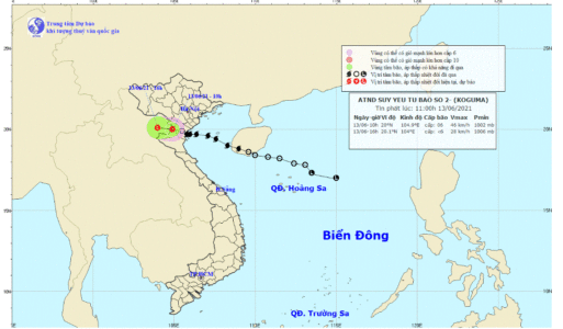 Theo TTKTTV TƯ, ATNĐ đã mạnh lên thành bão và trở thành cơn bão số 2, tên quốc tế là Koguma. Vào hồi 19h, vị trí tâm bão cách đất liền khu vực từ Hải Phòng đến Nghệ An khoảng 210km. Sức gió mạnh nhất vùng gần tâm bão mạnh cấp 8 (60-75km/giờ), giật cấp 10.