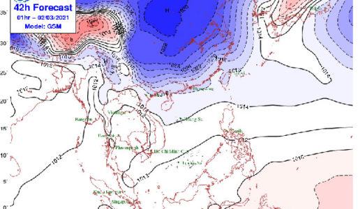 Hiện nay (18/02), không khí lạnh có cường độ ổn định. Dự báo: Ngày và đêm nay, do ảnh hưởng của không khí lạnh nên ở vùng biển từ Quảng Trị đến Ninh Thuận có gió đông bắc mạnh cấp 6, giật cấp 7; biển động; sóng biển cao từ 2,0 – 3,0 m.