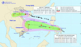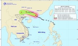 Bão số 7 đang áp sát đảo Hải Nam (Trung Quốc), dự báo tiếp tục mạnh thêm và đi vào đất liền các tỉnh từ Thái Bình đến Nghệ An vào khoảng chiều mai (14/10).