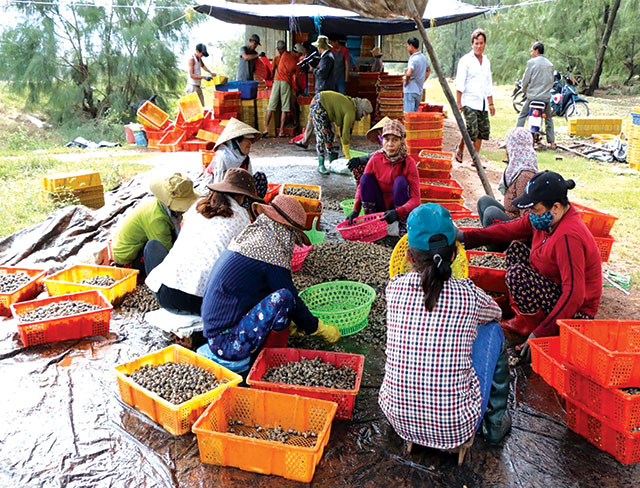 Vụ ốc hương bội thu đầu năm 2021 của anh Lê Châu. Ảnh: Huyền Hương