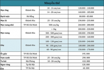 Báo giá thủy hải sản trong nước từ 25-30/10/2017