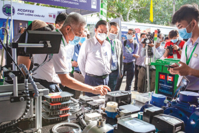 TS Nguyễn Thanh Mỹ (ngoài cùng bên trái) giới thiệu các công nghệ của RYNAN® Technologies Vietnam với lãnh đạo Bộ NN&PTNT
