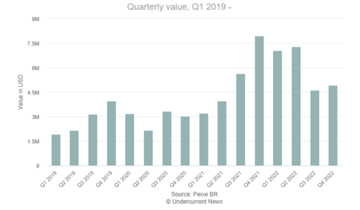 (TSVN) – Xuất khẩu các sản phẩm nuôi trồng thủy sản của Brazil đạt 8.492 tấn, trị giá hơn 23,8 triệu USD trong năm 2022, theo dữ liệu được công bố bởi Hiệp hội nuôi cá của nước này (Peixe BR). Con số này giảm 13% về khối lượng nhưng tăng 15% về giá trị so năm 2021.