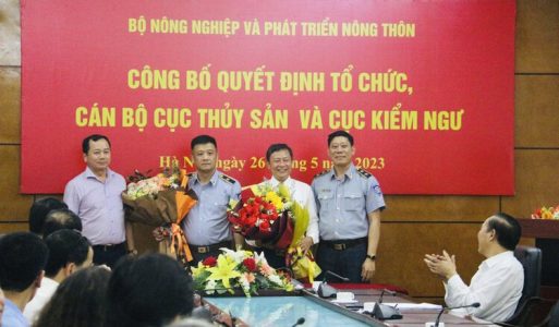(TSVN) – Ngày 26/5/2023, Bộ NN&PTNT tổ chức Lễ công bố quyết định tổ chức, cán bộ Cục Thủy sản và Cục Kiểm ngư. Thứ trưởng Bộ NN&PTNT Phùng Đức Tiến chủ trì Lễ công bố.