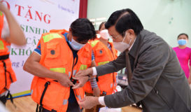 (TSVN) – Nguyên Chủ tịch nước Trương Tấn Sang cùng lãnh đạo Trung ương Hội chữ thập đỏ Việt Nam đã trao tặng hơn 1.600 áo phao cứu sinh đa năng cho ngư dân có hoàn cảnh khó khăn trên địa bàn tỉnh Quảng Ngãi.