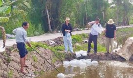 Để đảm bảo sức đề kháng, phòng ngừa dịch bệnh, người nuôi tôm Hà Tĩnh đã chủ động triển khai các biện pháp khử khuẩn môi trường nước, ổn định các chỉ số trong ao nuôi.