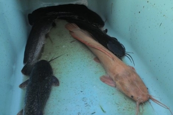 Con cá trê nặng khoảng 2kg, có màu trắng hồng, đã được Tổ chức bảo tồn động vật hoang dã WAR mua lại.