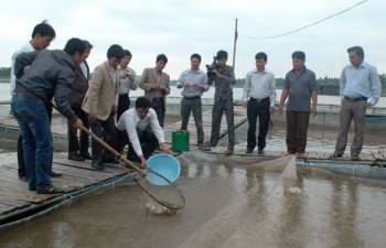 Chi cục Thủy sản tỉnh Bắc Ninh tổ chức hội nghị đánh giá kết quả mô hình nuôi cá lồng trên sông Đuống tại xã Mão Điền (Thuận Thành) và Trung Kênh (Lương Tài).